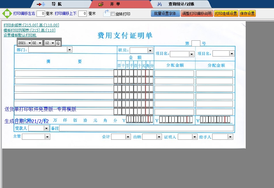 费用支付证明单送货单打印软件