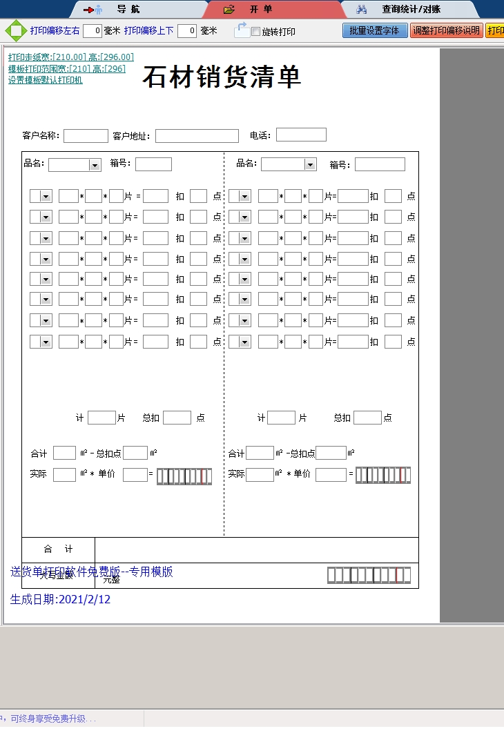 石材销货清单送货单打印软件