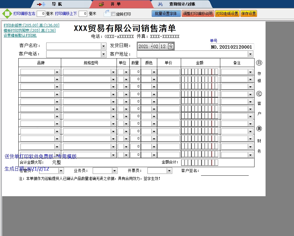 贸易销售单送货单打印软件