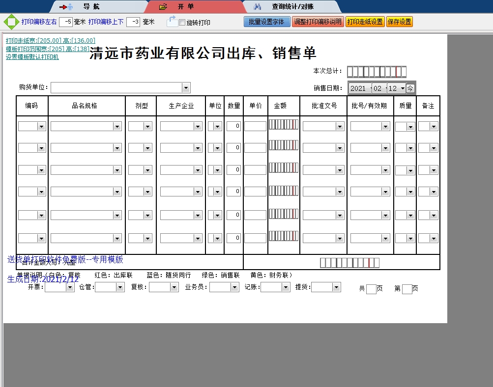 单据说明(白色:复核红色:出库联蓝色:随货同行绿色:销售联黄色:财务联)