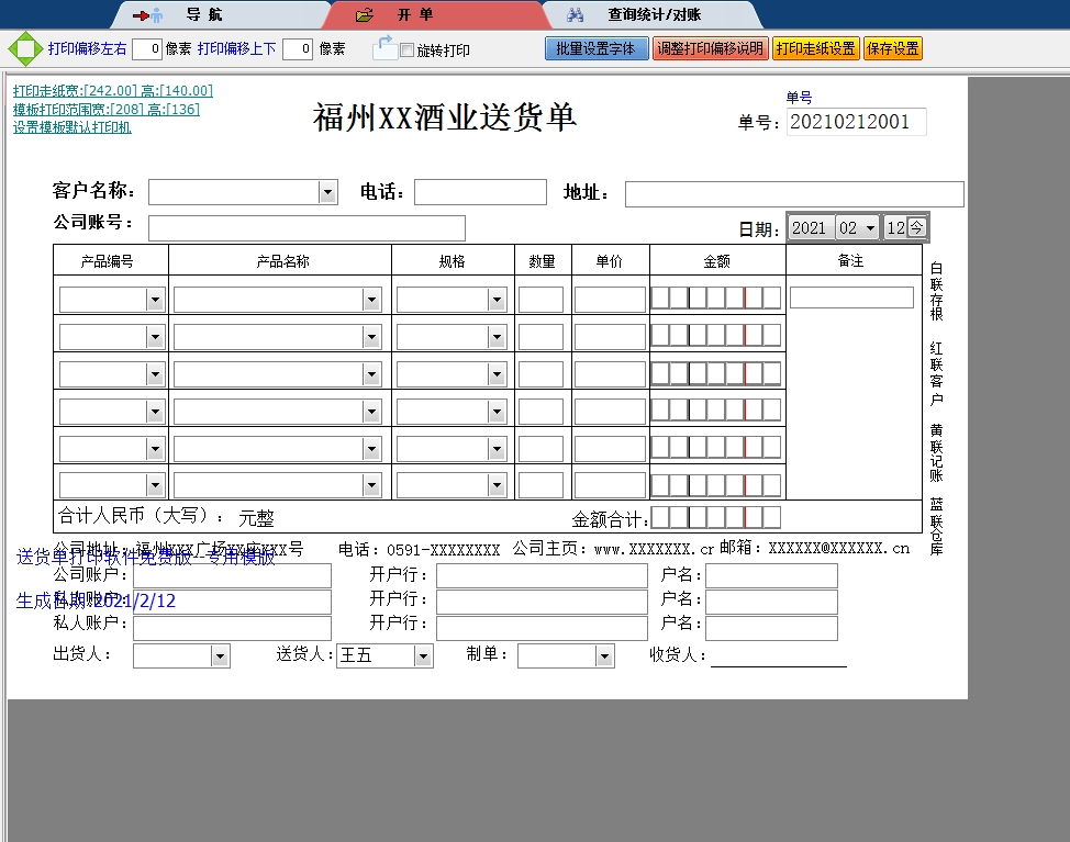 福州酒业送货单送货单打印软件
