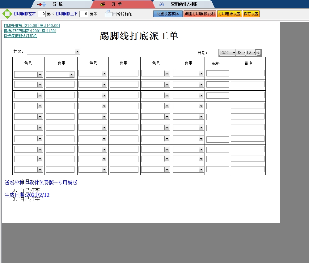 踢脚线打底派工单送货单打印软件