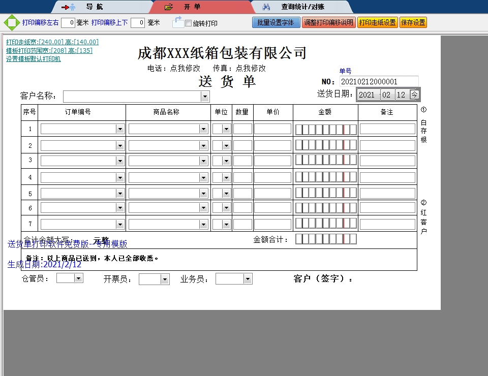 成都纸箱包装有限公司送货单打印软件