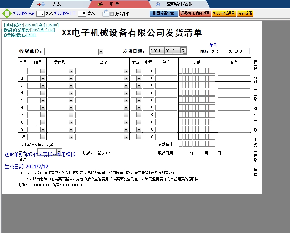 电子机械设备有限公司发货清单送货单打印软件