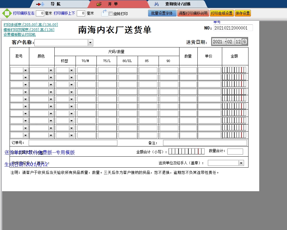注明:请客户于收货后当天验收所有货品质量,数量。三天后作为客户接纳的货品,恕不退换,逾期恕不负其连带性责任。