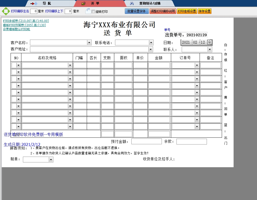海宁布业送货单打印软件