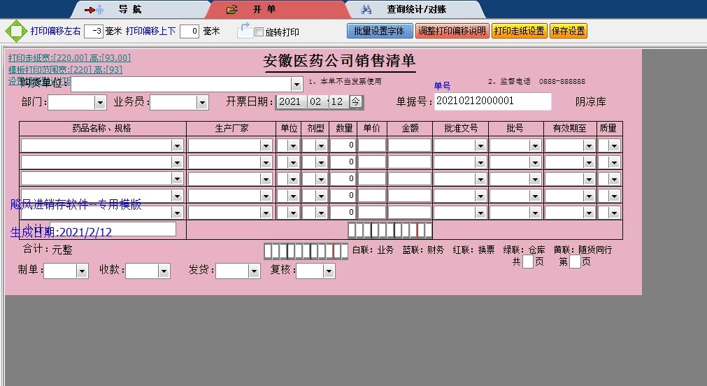 药品销售清单送货单打印软件免费版