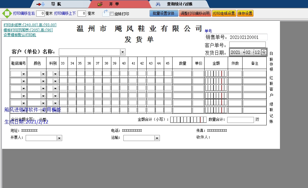 鞋业有限公司送货单进销存软件