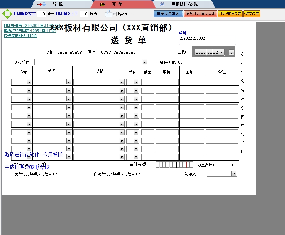 XXX板材有限公司送货单打印软件免费版