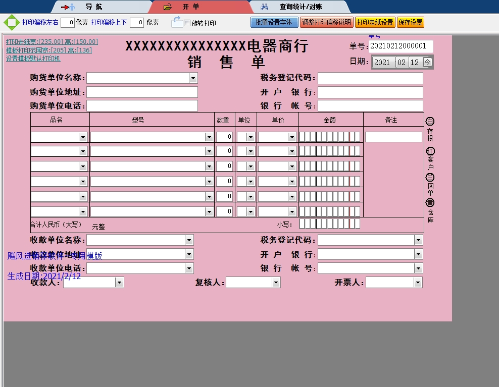 电器商行销售单送货单打印软件免费版