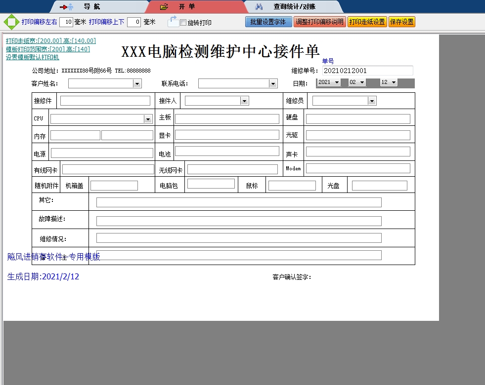 电脑维修接件单进销存软件