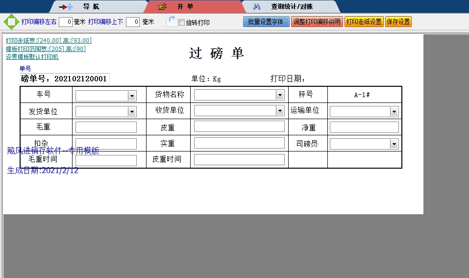 过 磅 单送货单打印软件免费版